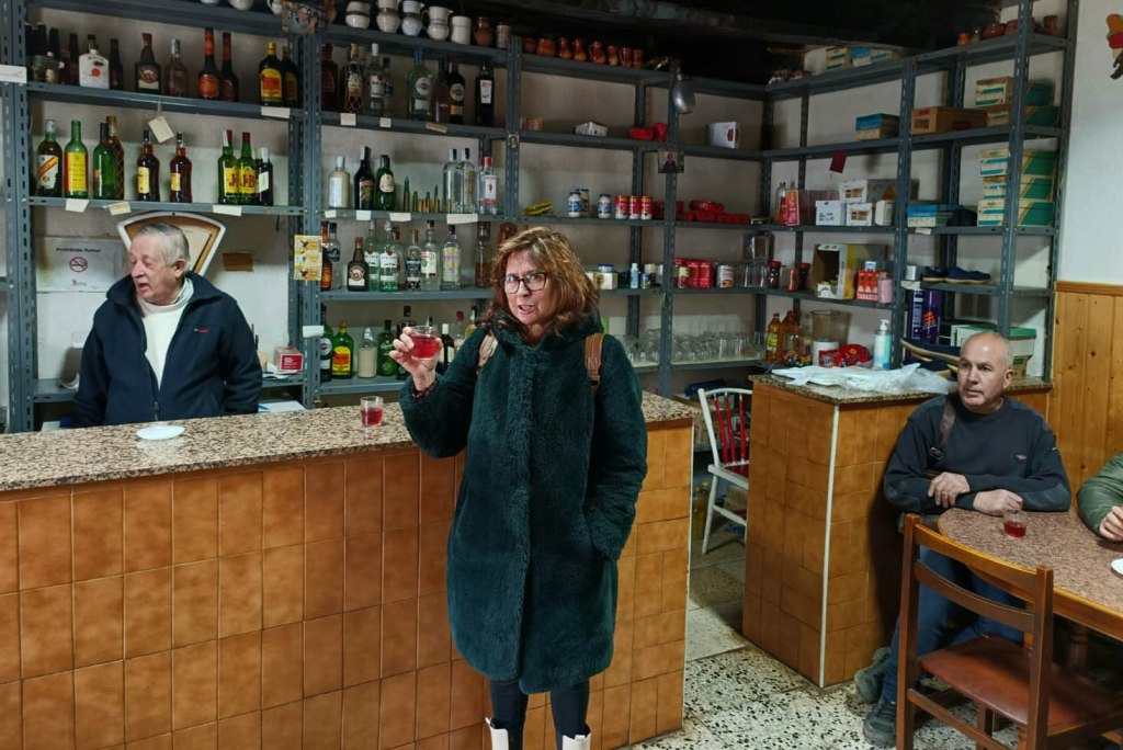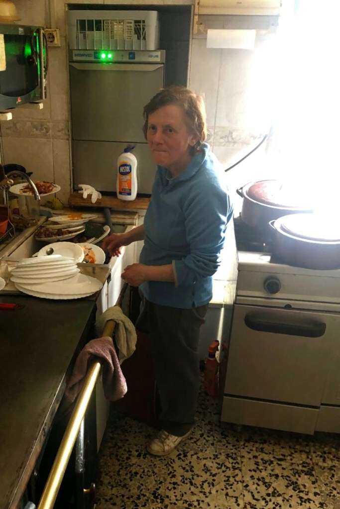 Antes de entrar en el pequeño comedor del local atravesamos la cocina, donde la madre con sus 92 años y hermana de Maxi se afanan con sumo cariño y dedicación a cocinar a fuego lento en pucheros y cacerolas en la vieja cocina de leña. Todo un espectáculo para los sentidos que nos retrotae a otros tiempos.